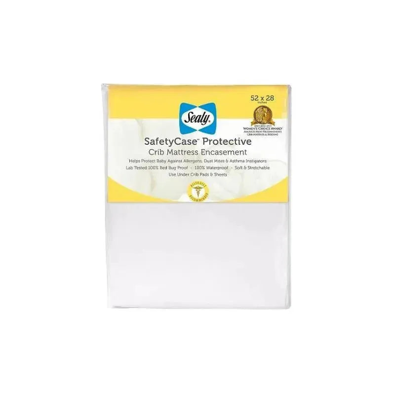 Protect baby’s mattress from bed bugs and household allergens with the award winning Sealy SafetyCase Protective Crib Mattress Encasement. Laboratory tested to be 100% bed bug proof, this encasement fully zips around your baby’s crib mattress, helping to guard the mattress against bed bugs, dust mites, pet dander, pollen and other asthma instigators. For added protection, this encasement is 100% waterproof and features tightly woven fabric that is soft and stretchable for a comfortable sleeping environment for baby. The Safety Case is machine washable and dryer friendly for easy cleaning and can be used with crib mattress pads and crib sheets for the ultimate protection and comfort for baby’s bed. Designed to fit USA standard full size crib and toddler bed mattresses, the Sealy SafetyCase Protective Crib Mattress Encasement measures 52” L x 28” W and features a square corner design to easily zipper around and encase both square and round corner baby mattresses.