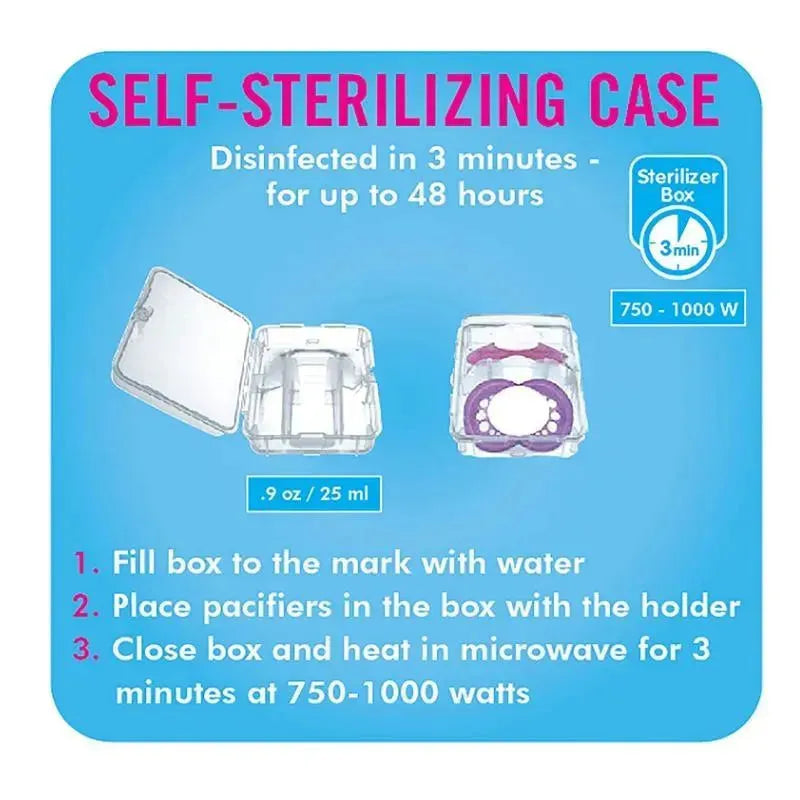 Storage case is reusable and can be used in the microwave to sterilize pacifiers