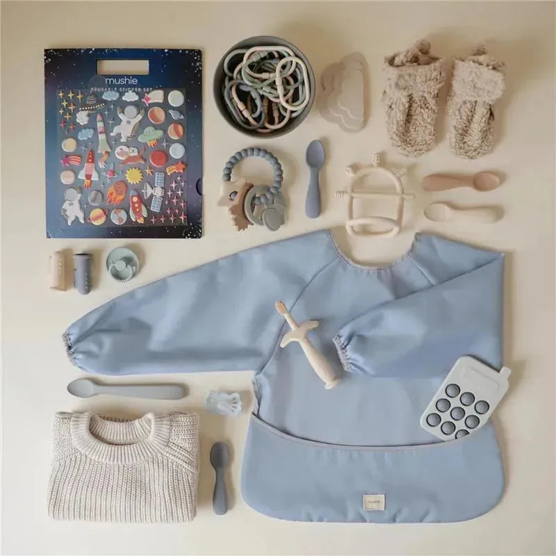 Mess & Worry Free: Keep the kids clean at mealtimes, during art projects or in other messy moments with the mushie water resistant long sleeve bib.