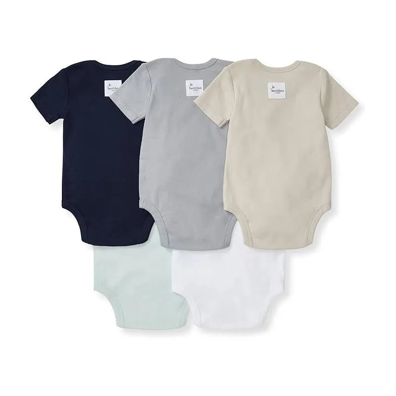 Burts Bees - 5Pk Baby Unisex Solid Short Sleeve Bodysuits, Midnight