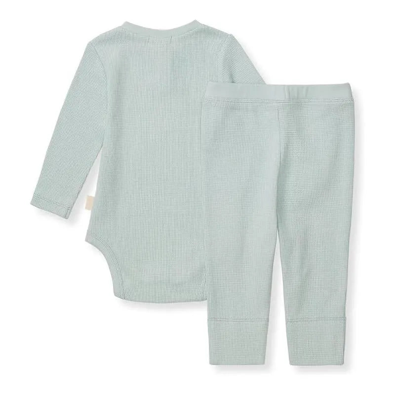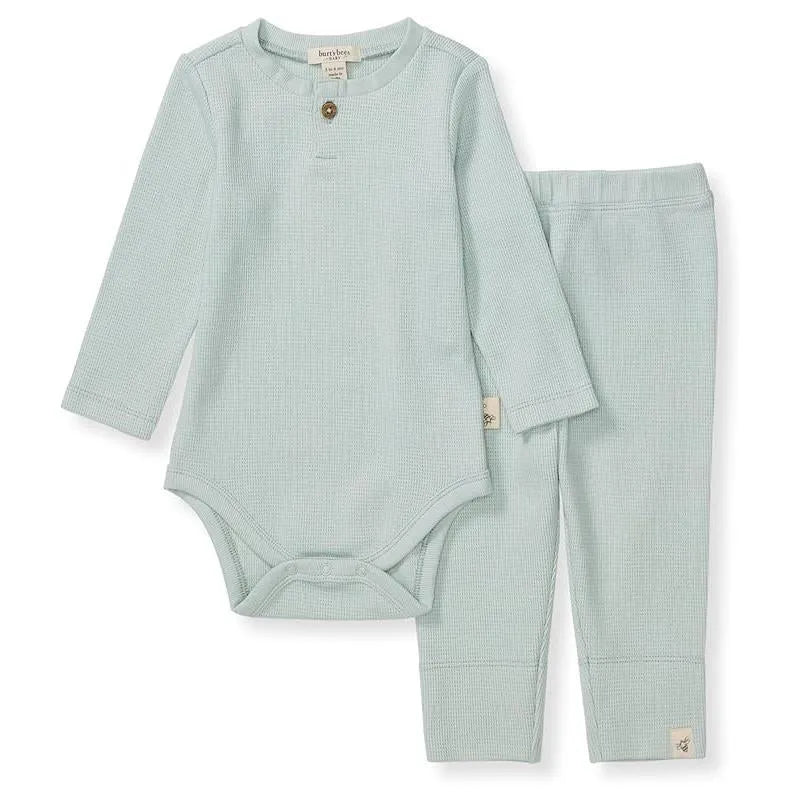 Burts Bees - Baby Unisex Thermal Bodysuit & Pant Set, Cloudy