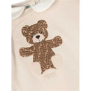 Light beige stretch-cotton embroidered logo to the front Babygrow: teddy bear print Peter Pan collar concealed front press-stud fastening long sleeves Hat: turn-up brim pull-on style