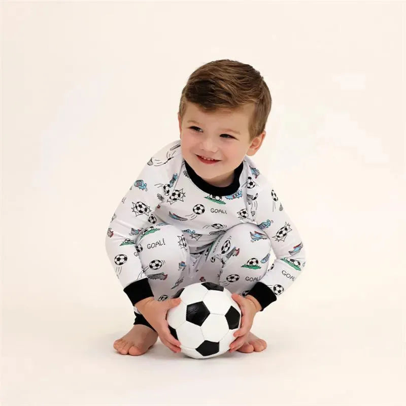 Kick off bedtime with our Soccer Pajama Set for boys! Perfect for young athletes and soccer fans, this cozy pajama set features an exciting soccer print that brings the thrill of the game to bedtime.