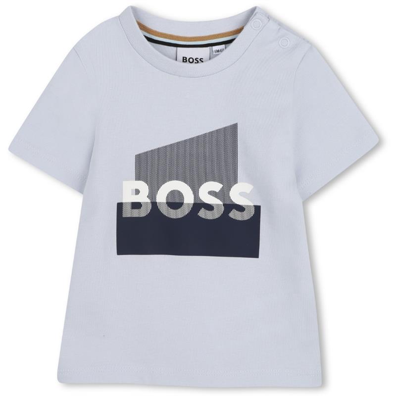 Short-sleeved cotton jersey T-shirt with BOSS graphic centered at chest. Press stud fastening at shoulder.