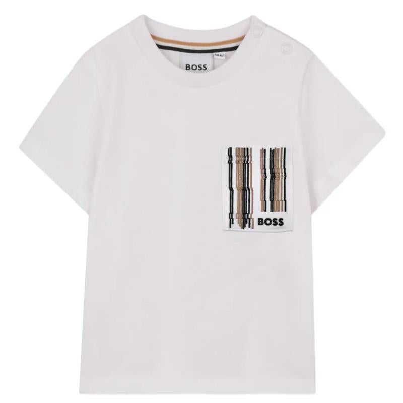 The Hugo Boss Baby Short-Sleeved T-Shirt in White is a refined essential designed for everyday comfort with a premium finish. Crafted from soft, breathable cotton, this classic crew neck tee offers a gentle feel against delicate skin while ensuring durability for daily wear.