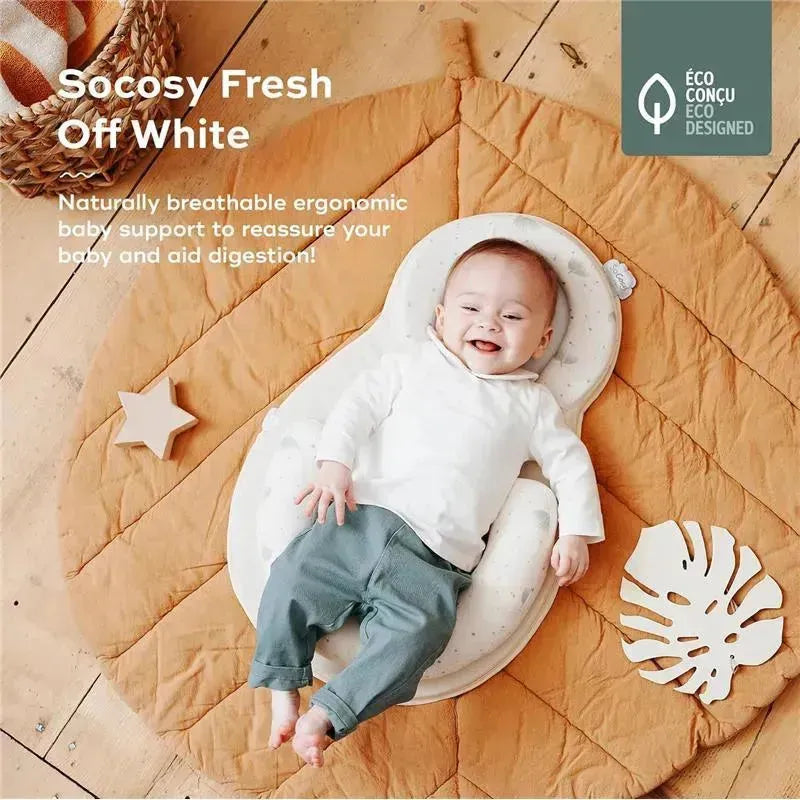 Meet the Babymoov Socosy, the original organic infant floor pad. The Socosy features an innovative and patented leg support roll that keeps your baby's legs raised and thus help with digestion. It features a built-in headrest to support the head without restricting neck movement. Your baby will benefit from optimal comfort during playtime, nursing, bonding, and more. It is machine washable on gentle cycle for easy care. Socosy is a baby registry must-have!