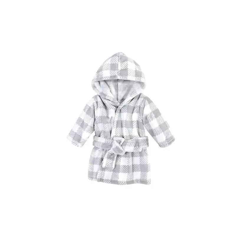 Baby Vision Plush Bathrobes 0-9M, Gray Plaid