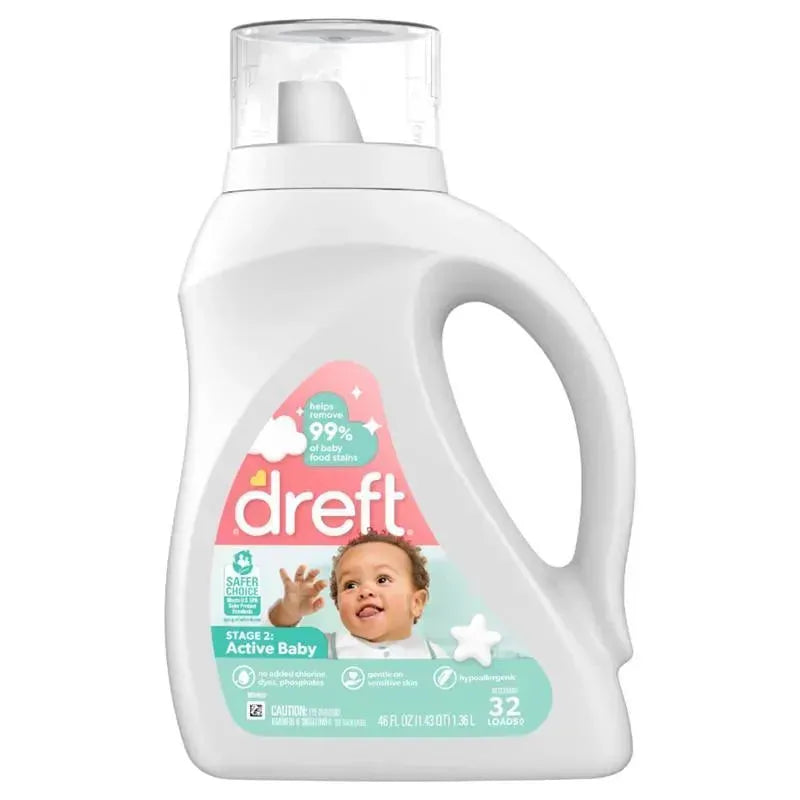 Dreft Stage 2: Active Baby Liquid Detergent is specially designed with your developing baby in mind. That’s why it helps remove 99% of baby food stains and all the messes baby can find while crawling in grass and dirt. Let Dreft Active Baby care for the messes, so you can spend more time enjoying the precious moments of babyhood. What's more, it's designed to work in both standard and high efficiency (HE) washing machines, so you can use Dreft products no matter what kind of washing machine you have. Choose Dreft Stage 2: Active Baby Liquid Detergent and provide stainless and nice smelling fabrics for your crawling baby!