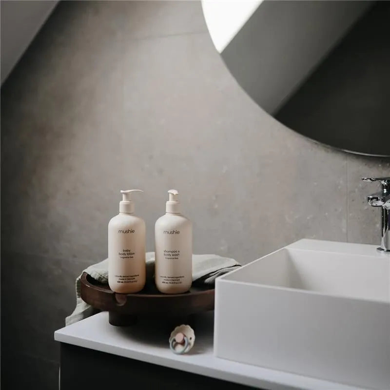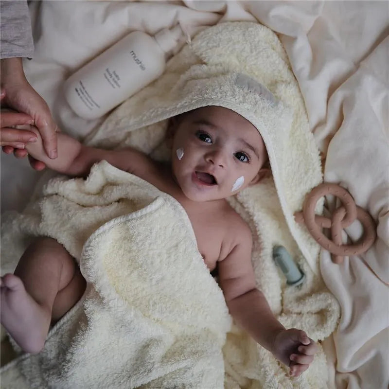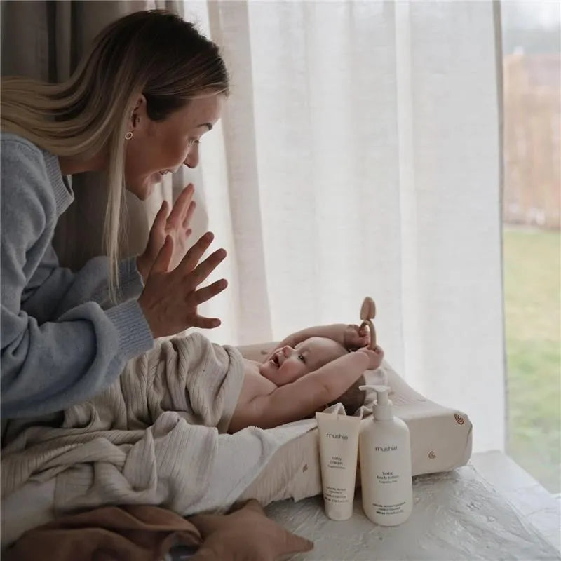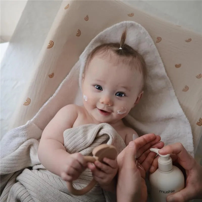 Soothe and moisturize your baby's skin with Mushie's Baby Body Lotion. Derived from natural ingredients, our formula protects and hydrates dry skin while leaving your little one super soft from head to toe.