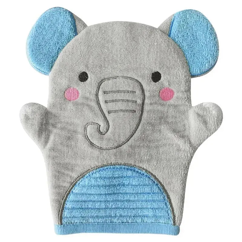 HIGH QUALITY: A 100% terry cloth material construction provides a durable and exciting way for kids to scrub clean in the tub. It's machine washable, and measuring at 8.25"x 9.5", this bath mitt is perfect for little hands to hold without being too small for parents.