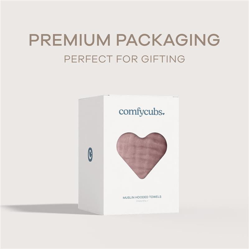 Indulge in Ultimate Softness: Crafted from 100% premium muslin cotton, Comfy Cubs hooded towels are designed with the delicate skin of your little ones in mind. The fabric is incredibly soft, providing a comforting cocoon of warmth for your baby after each bath.