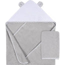 Bathe and dry your baby in style with this adorable hooded towel and washcloth mitt set!
