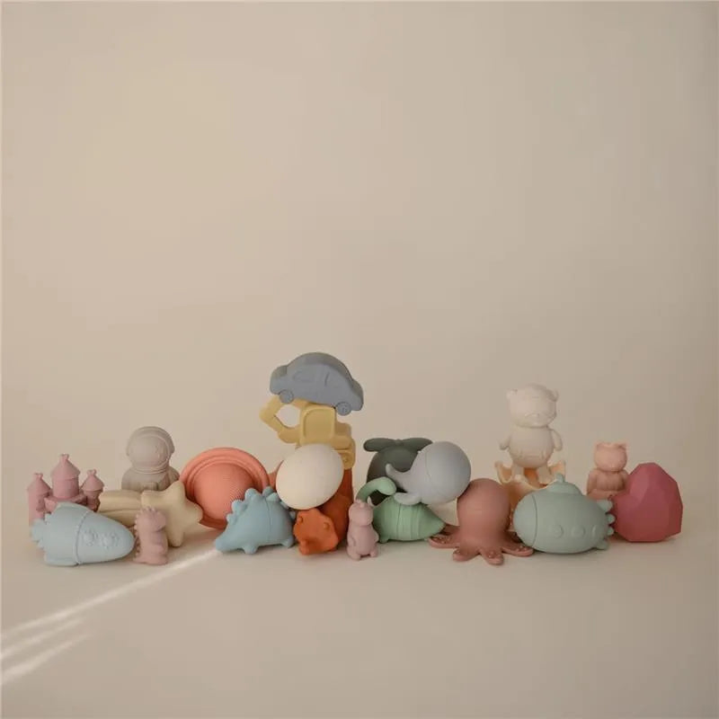 These toys aren’t just charming, they're also crafted with your child's safety in mind. Each piece is fashioned from 100% food-grade silicone, providing a soft, easy-to-hold texture that's ideal for wet or dry play. Rest assured, they're 100% free of BPA, BPS, PVC, and Phthalates.