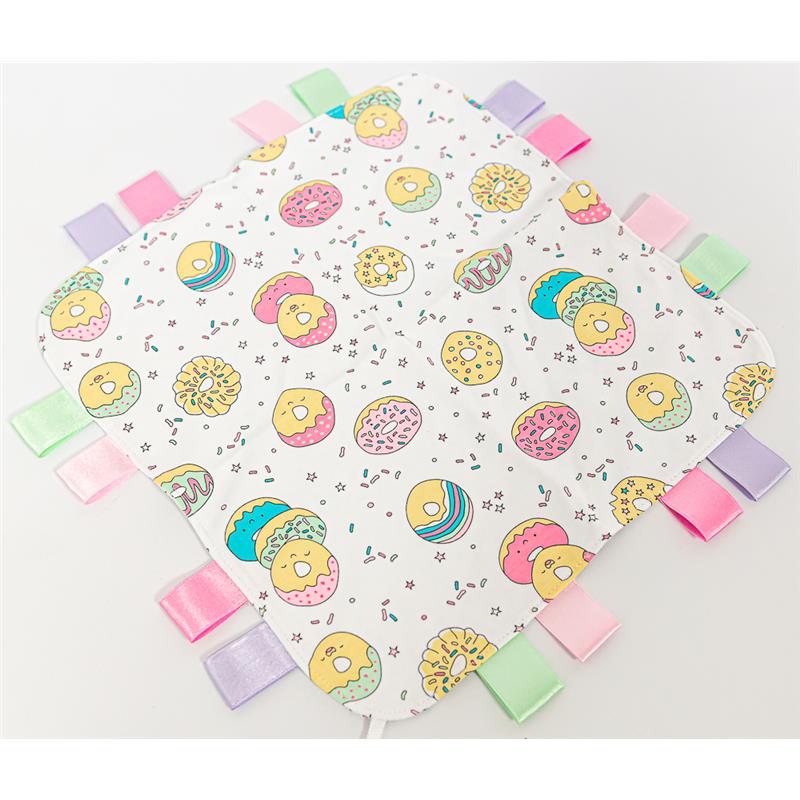 The Noomie Security Blanket Donuts help comfort and soothe your baby girl while also helping develop motor skills with its ribbon loops.