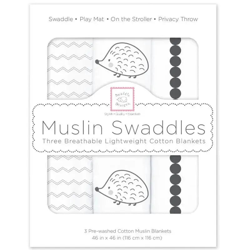 Swaddle Designs - 3Pk Muslin Swaddle Blankets, Hedgehog & Bumpkin