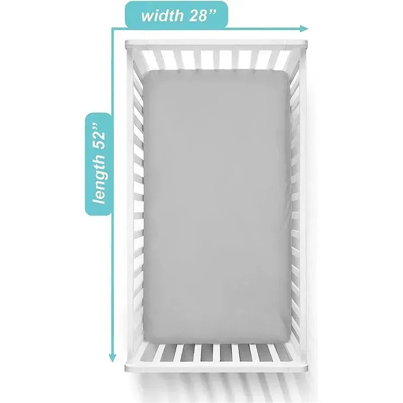 Our 100% Organic Cotton Grey value jersey knit fitted Crib Sheet is available in a variety of colors and patterns to coordinate with your baby's nursery. Fits a standard 28" X 52" Crib mattresses; 9" Deep pockets with elastic in the corners provide a snug fit. Designed for a 5 inch thick Mattress. Machine wash cold on gentle cycle, tumble dry low for best results.