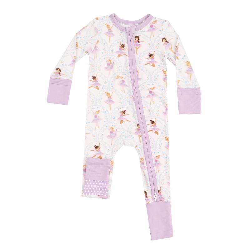 Sweet, soft, and full of charm, the Angel Dear Baby Girl Bow Ballerinas 2-Way Zipper Romper is perfect for your little dancer in training. Featuring an adorable ballerina print with dainty bows, this romper is crafted from luxuriously soft bamboo viscose for all-day comfort. The convenient two-way zipper makes outfit and diaper changes a breeze, while the fold-over cuffs (in smaller sizes) help keep tiny hands warm and protected. A dreamy mix of cuteness and practicality—perfect for twirling into nap time or playtime!