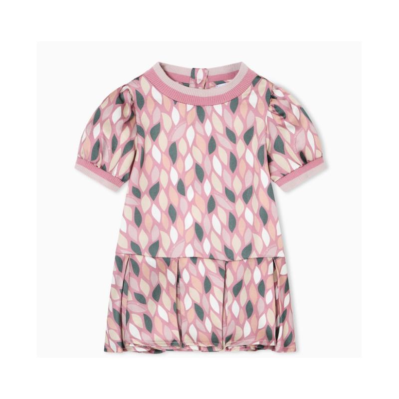 Armani - Baby Girl Short Sleeve Printed Dress, Pink Logo