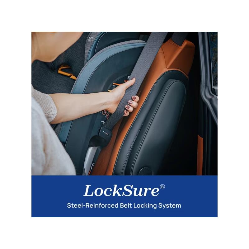 Installation: ReclineSure leveling system, RideRight bubble levels, Premium LATCH connectors, LockSure steel-reinforced seat belt locking system