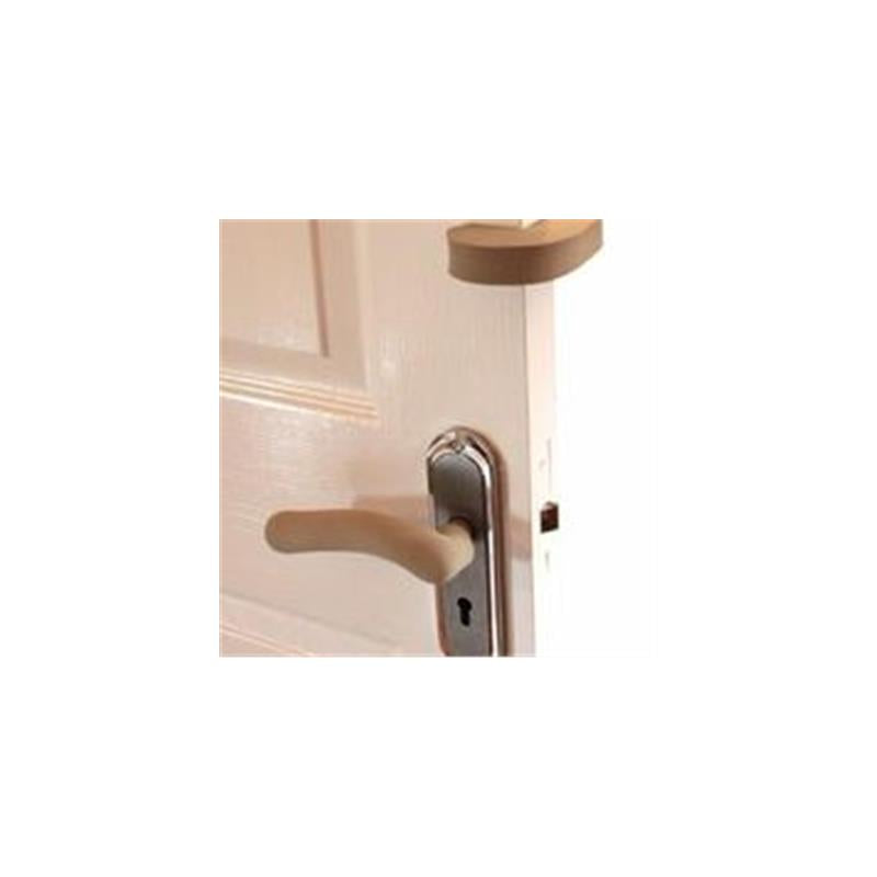 The ClevaDoor™ is the essential kit offering full protection for your little one from handle knocks and finger pinches. The Door Stop prevents the door slamming and possibly catching little fingers. Ensure it is placed high enough so that your child cannot reach it. The unique Handle Guard stretches to fit over handles to reduce the risk of knocks and bangs. Simply dampen the inside of the handle guard to make fitting easier. These extra-long handle guards can be trimmed to fit. A single pack contains one door stop and two handle covers.