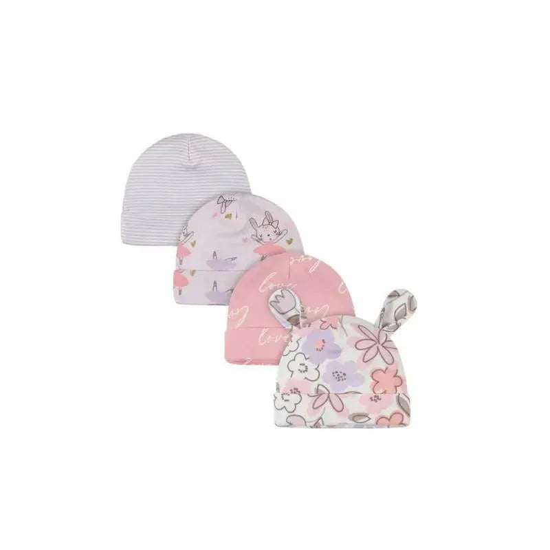 Gerber 4 Pack Baby Girls Bunny Ballerina Caps