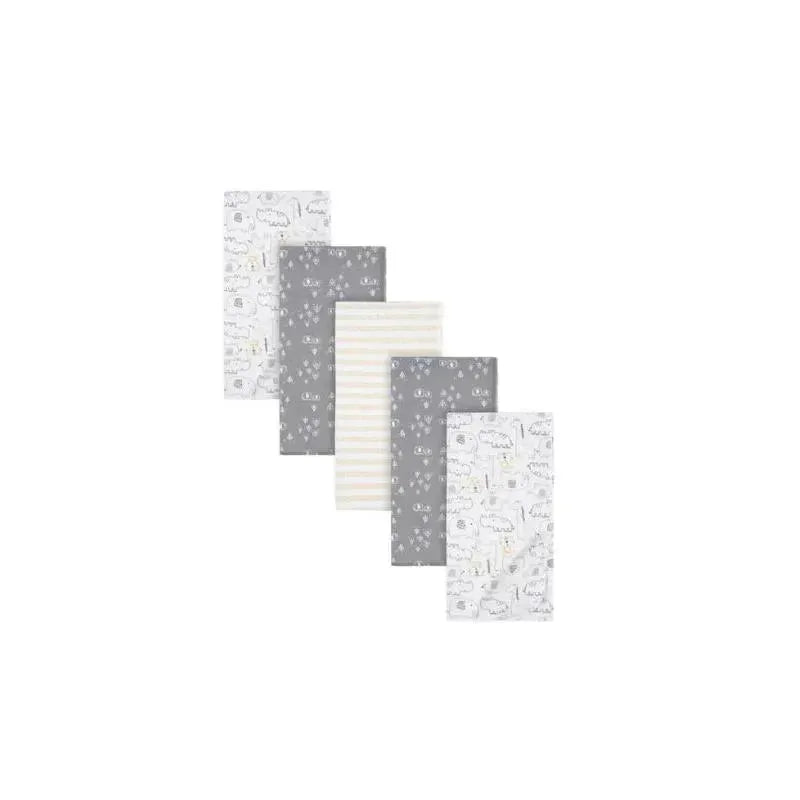 Gerber 5 Pack Baby Boy Safari Flannel Receiving Blankets