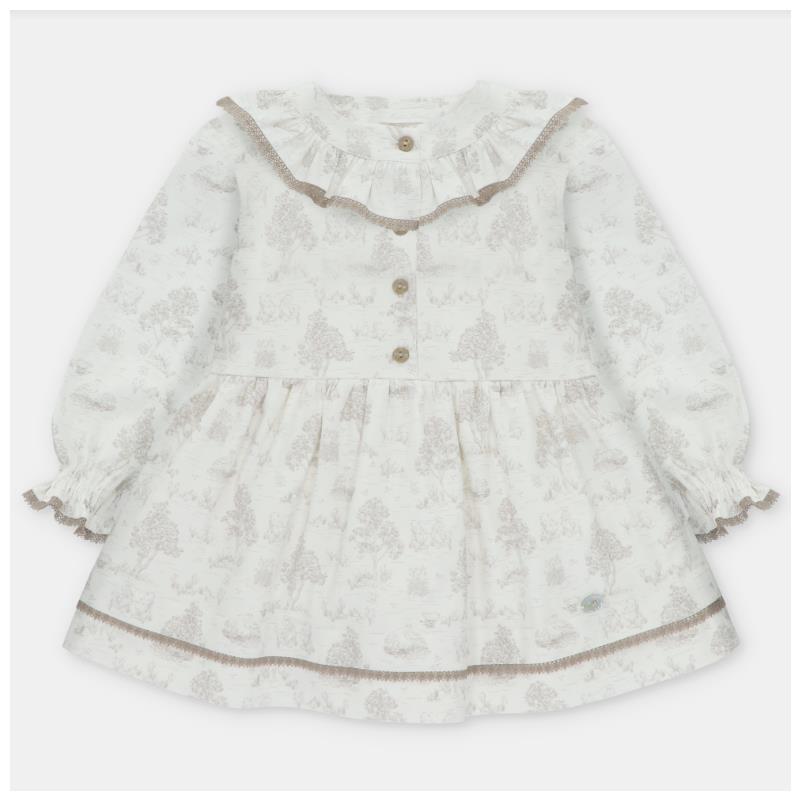 The Martin Aranda Baby Girl Dress Toile De Jouy Newport in White & Beige is a refined piece that blends timeless elegance with delicate design. Featuring a classic Toile de Jouy print in soft beige tones over a crisp white background, this dress exudes sophistication while maintaining a sweet and charming look. Perfect for special occasions or family gatherings, it offers both comfort and style, making it an essential addition to your baby girl’s wardrobe.