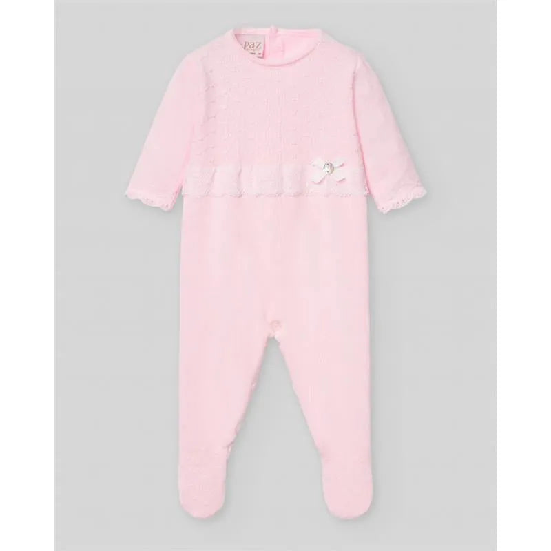 Paz Rodriguez - Baby Girl Knit Newborn Romper Linda, Chalk Pink/White