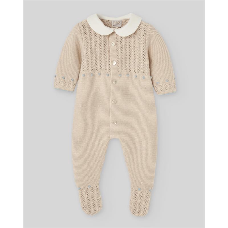 Paz Rodriguez - Knit Newborn Romper Alegria, Light Brown/Chalk Blue