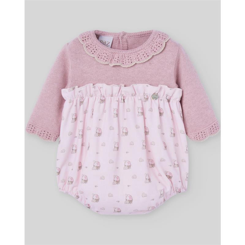 Paz Rodriguez - Knit Newborn Romper Pascua, Powder Pink/Light Brown