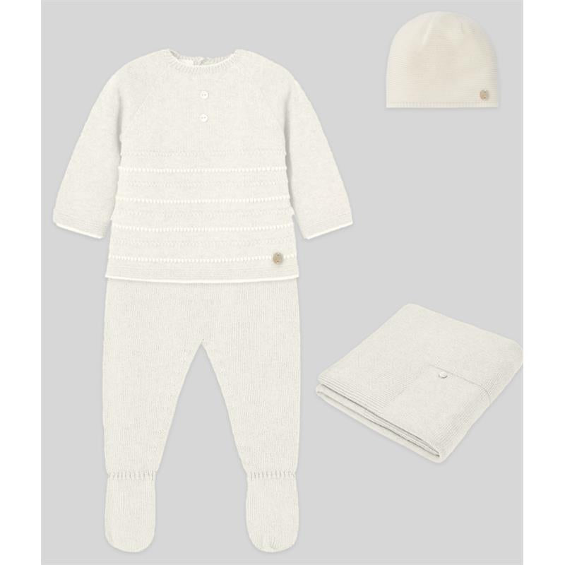 Paz Rodriguez - Set Knit Newborn Sweater + Leggings + Hat + Blanket Regalo Oi, Cream