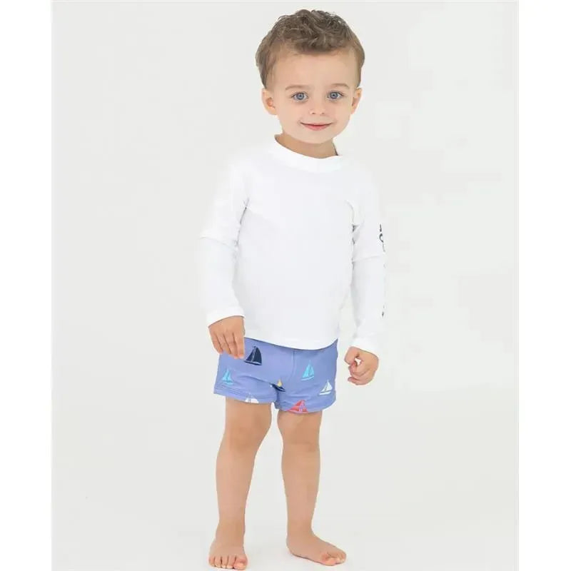 Complete your baby boy's summer swim outfit with our swim shorties. Our swim shorts are designed with functional drawstrings and an inner mesh lining for extra comfort.