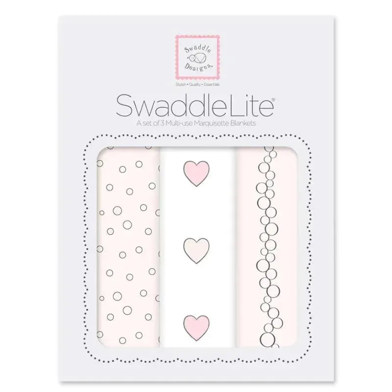 Swaddle Designs - 3Pk Bubble Dots, Hearts, Champagne Marquisette Swaddles