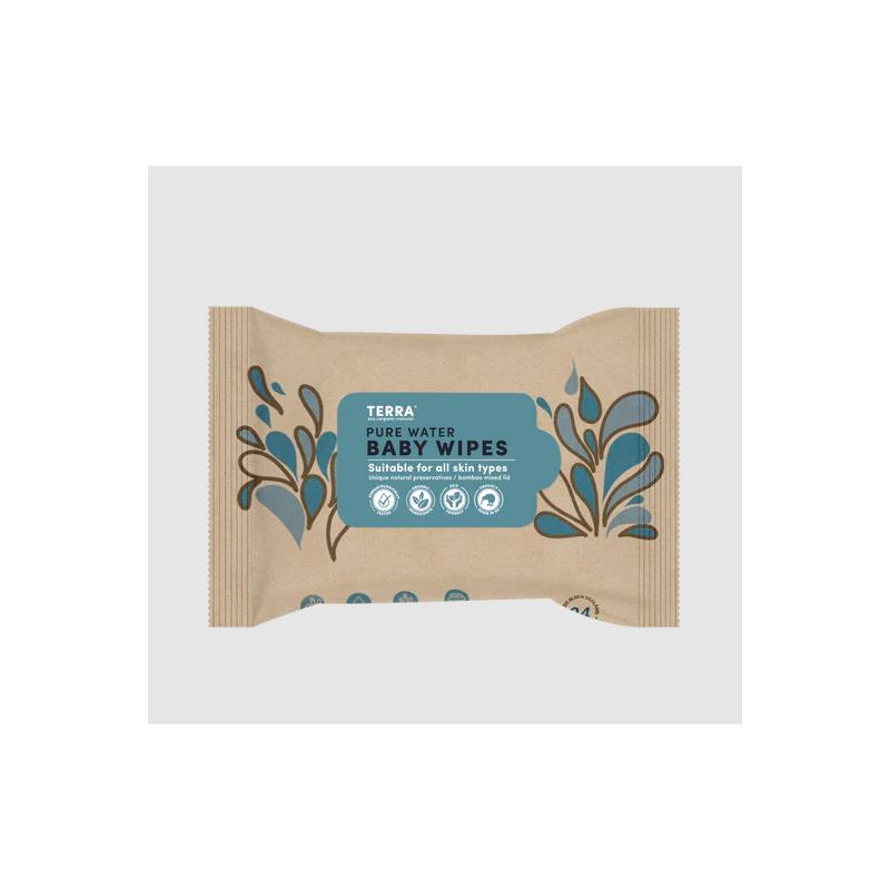 Terra Pure New Zealand Water Wipes. 100% Biodegradable bamboo fiber. 99.7% Pure New Zealand Water. Absolutely no harmful chemicals or unwanted ingredients, packed to the brim with moisture, and perfect for delicate, sensitive skin.  Our Travel Pack of 24 Bamboo Baby Wipes is perfect for your diaper bag, car or anywhere when you're on the go!