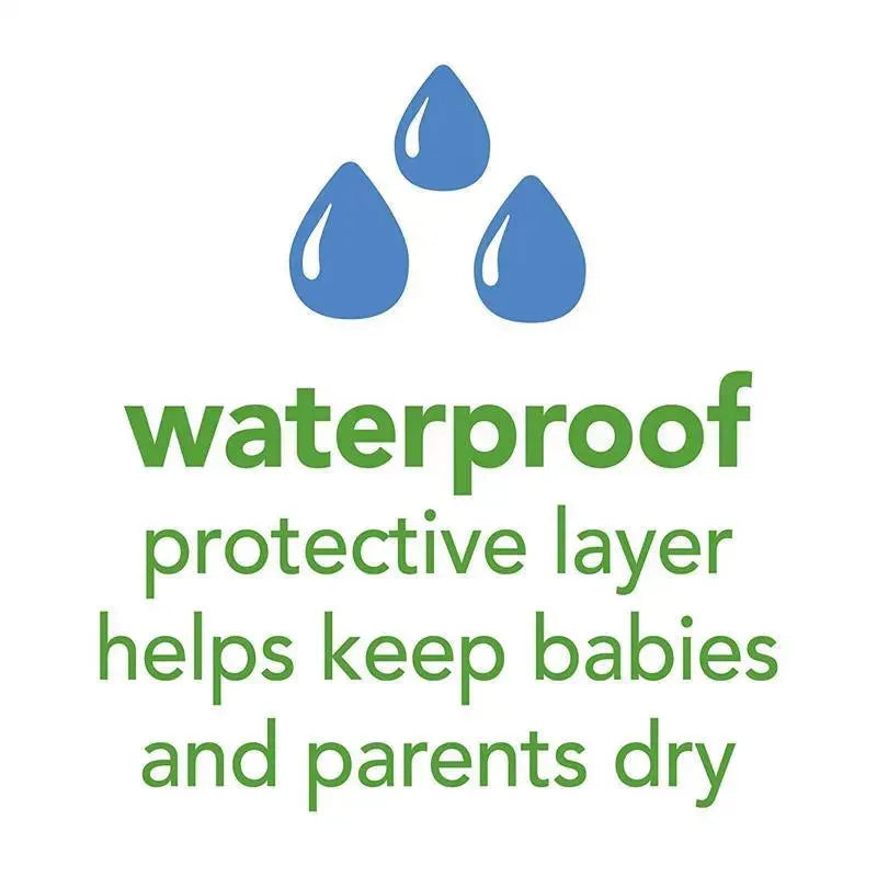 Stay-dry Milk-catcher bibs feature waterproof protection from drools and spit ups and adjustable hook and loop closure for easy on and off.