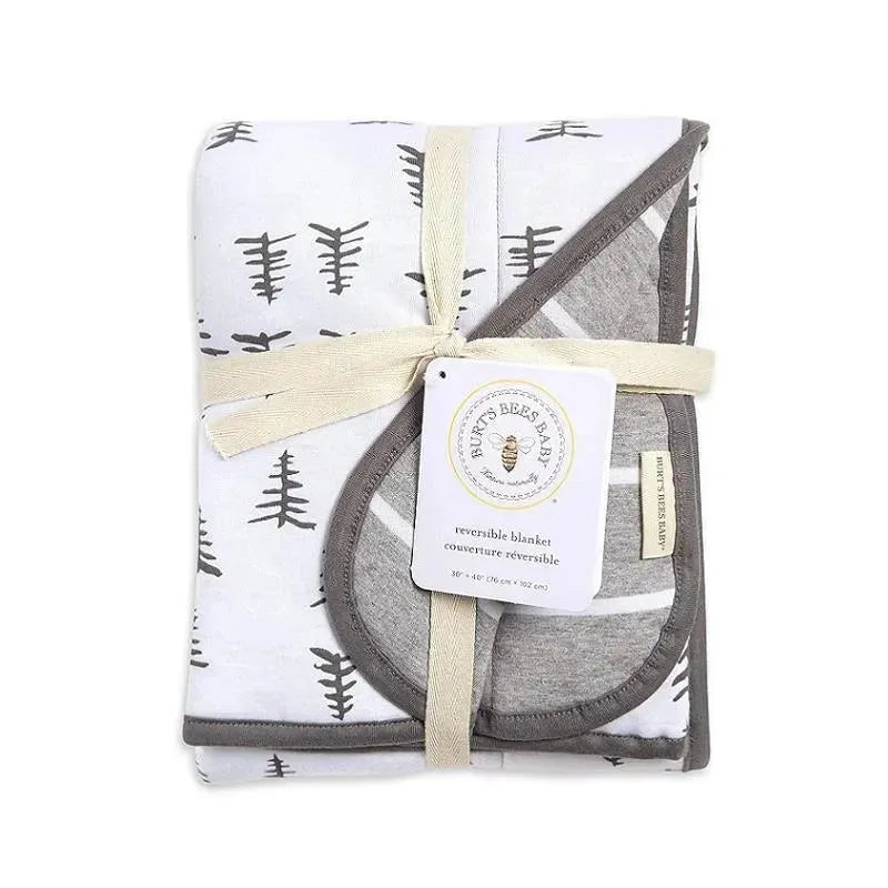 Burt's Bees Pine Forest Reversible Jersey Swaddle Blanket Heather Grey Hanger