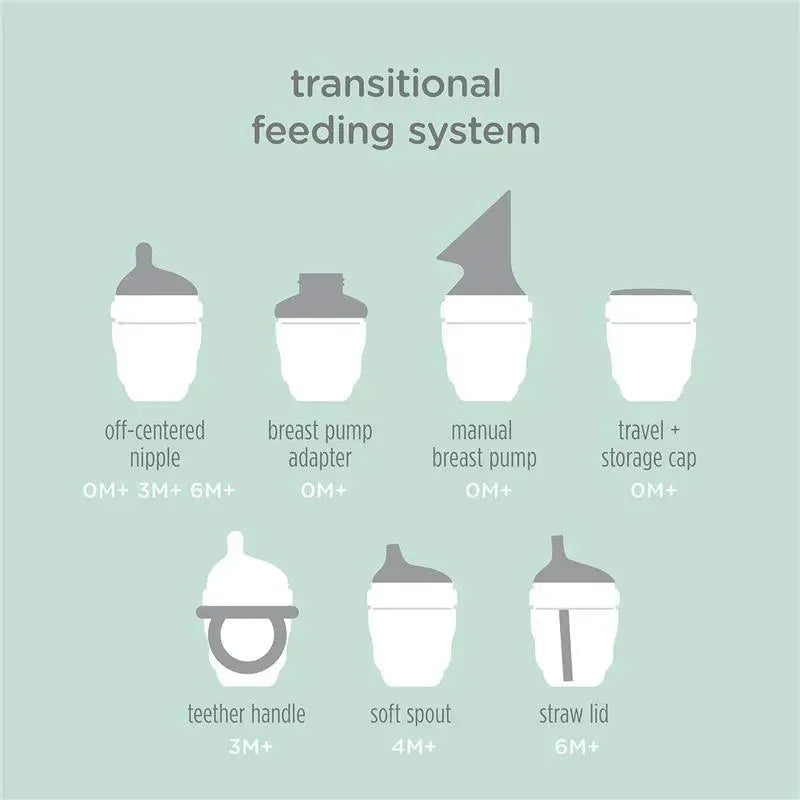Offset nipple design promotes upright feeding and ensures smooth milk flow down to the last drop