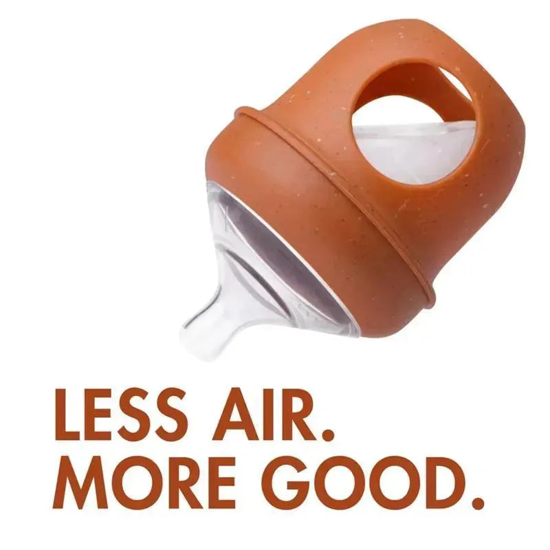 NURSH bottles feature a revolutionary air-free feeding design with a 100% silicone pouch that collapses as your little one drinks, helping prevent colic symptoms like gas and spit up. Other baby bottles use vents or valves that introduce air into milk to help it flow, NURSH doesn’t. Our pouch collapses as baby drinks, mimicking breast feeding with no added air. As a bonus, no vents or valves make it a snap to clean and assemble. (Who wants a complicated bottle at 2 am?) NURSH’s optimal nipple shape and length are easy for baby to latch on to, and the patented design ensures milk never touches plastic, only food-safe silicone.