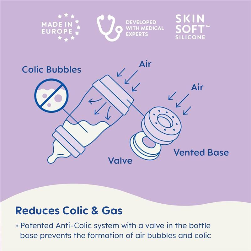 ANTI-COLIC - Our vented base design reduces colic symptoms in 80% of babies, eliminating bubbles that cause gas and aggravate colic and reflux symptoms.