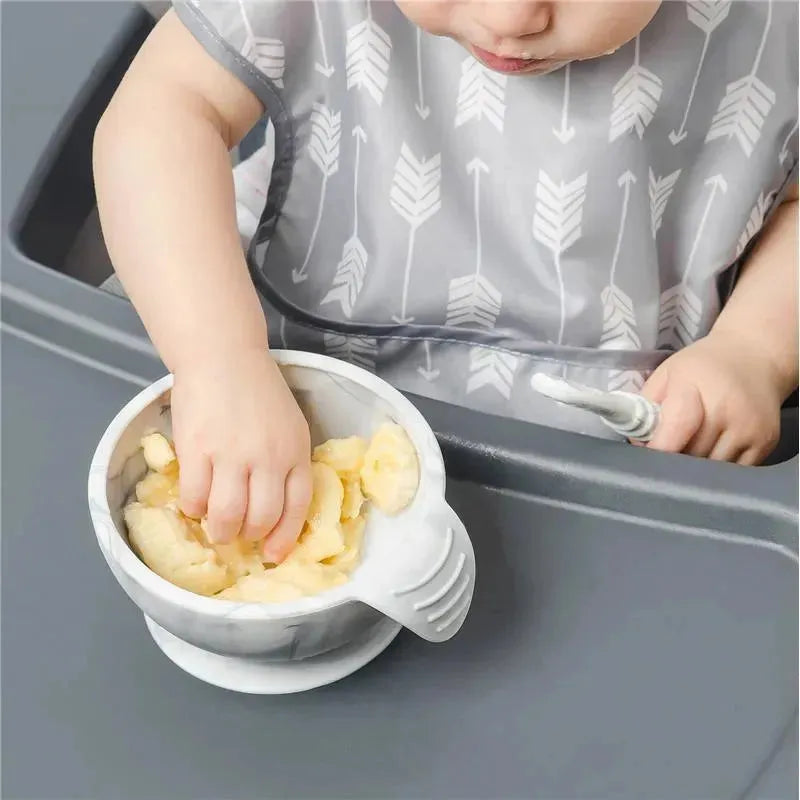 Bumkins Silicone First Feeding Set with Lid & Spoon, Marble
