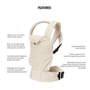 Carrier is padded and upholstered to offer comfort and support for baby, as well as perfectly balanced construction so mama feels less weight.