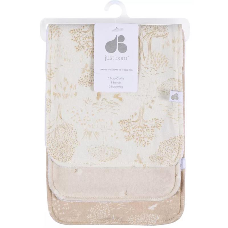 Just Born - 3Pk Burp Cloths Neutral Tan