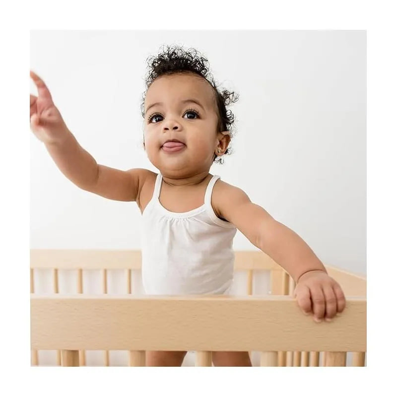 Lap Shoulder Design: Our baby bodysuits feature a lap shoulder style, making dressing and undressing easy. Say goodbye to tiny sleeves and hello to effortlessly sliding them on. The reinforced snaps ensure comfort and strength amidst baby activities.