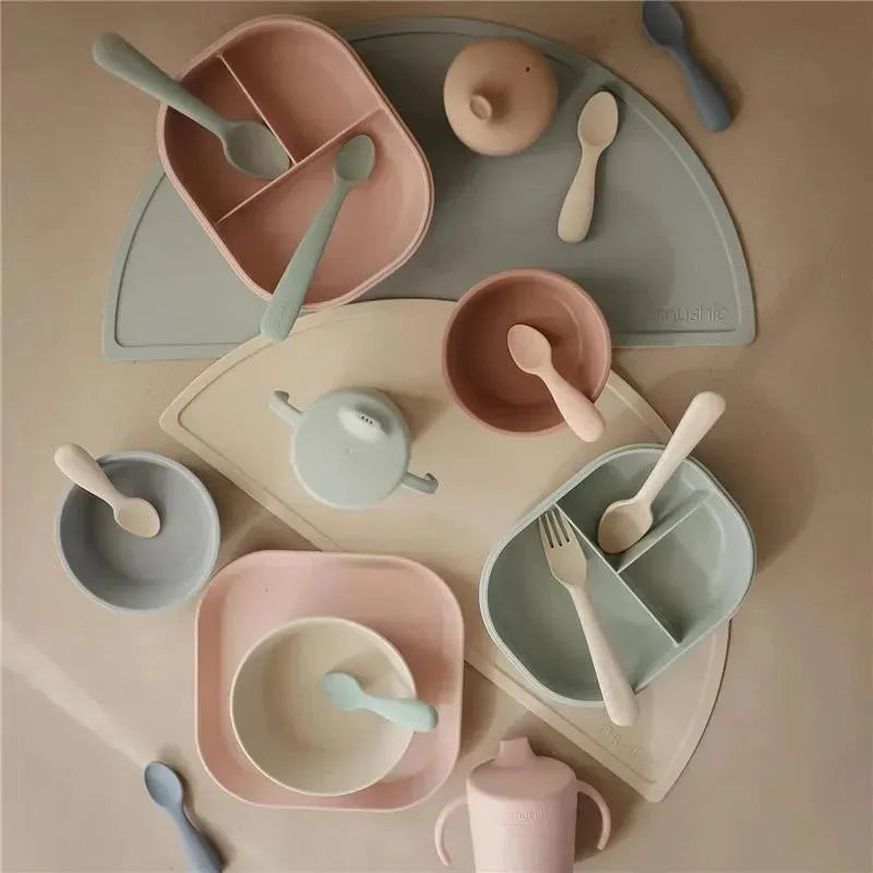 First Step to Self Feeding: Mushie toddler starter spoons are the perfect companion for your little one's journey into independent feeding. Recommended for little ones ages 12 months and up.
