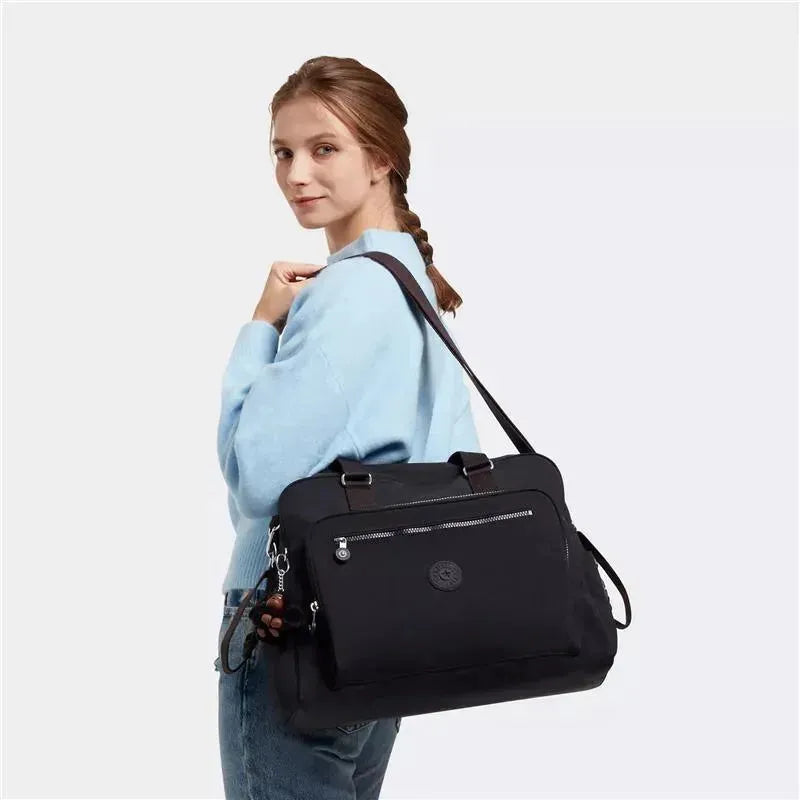 Toting around your baby's essentials just got easier, thanks to this durable nylon baby bag. Adorned in our lightweight crinkle nylon fabric, Alanna in Black Tonal color is a do-it-all diaper bag that is packed with functionality. It features plenty of pockets for toys, snacks, diapers and bottles, and comes with a changing pad and stroller clips that snap securely to your buggy. Plus, head over to our personalization shop to make it one-of-a-kind with a monogram.