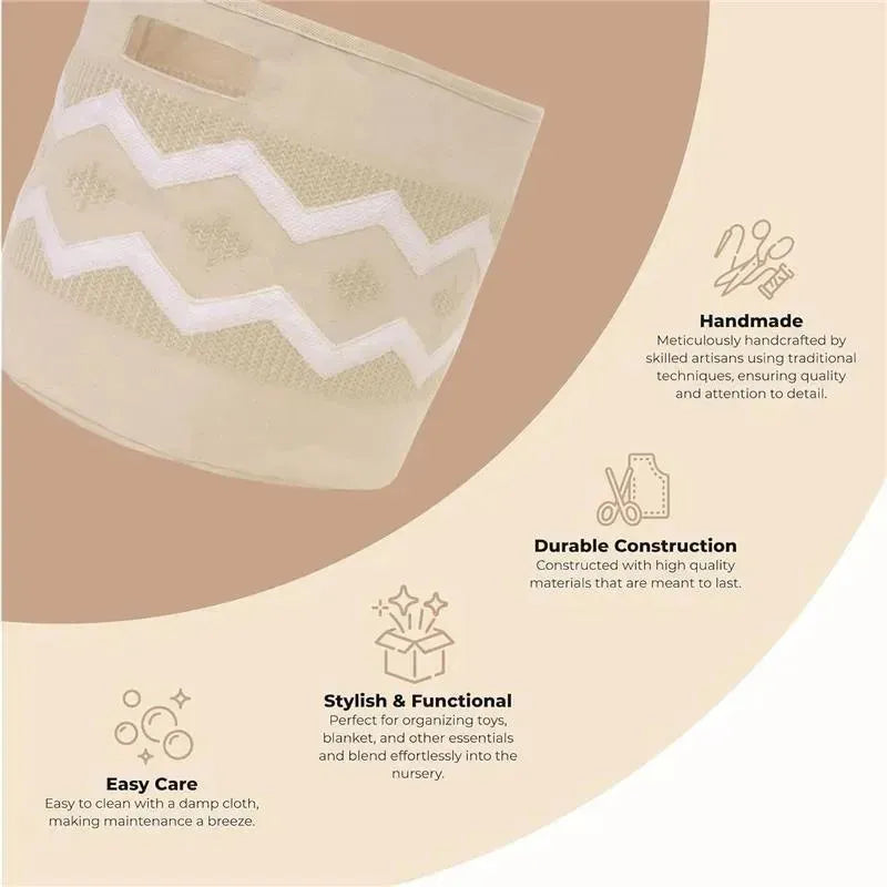 FABRIC STORAGE BASKET: Use as a toy bin to keep your nursery organized after playtime, or set by your baby's changing station as stylish storage for diapers and baby wipes