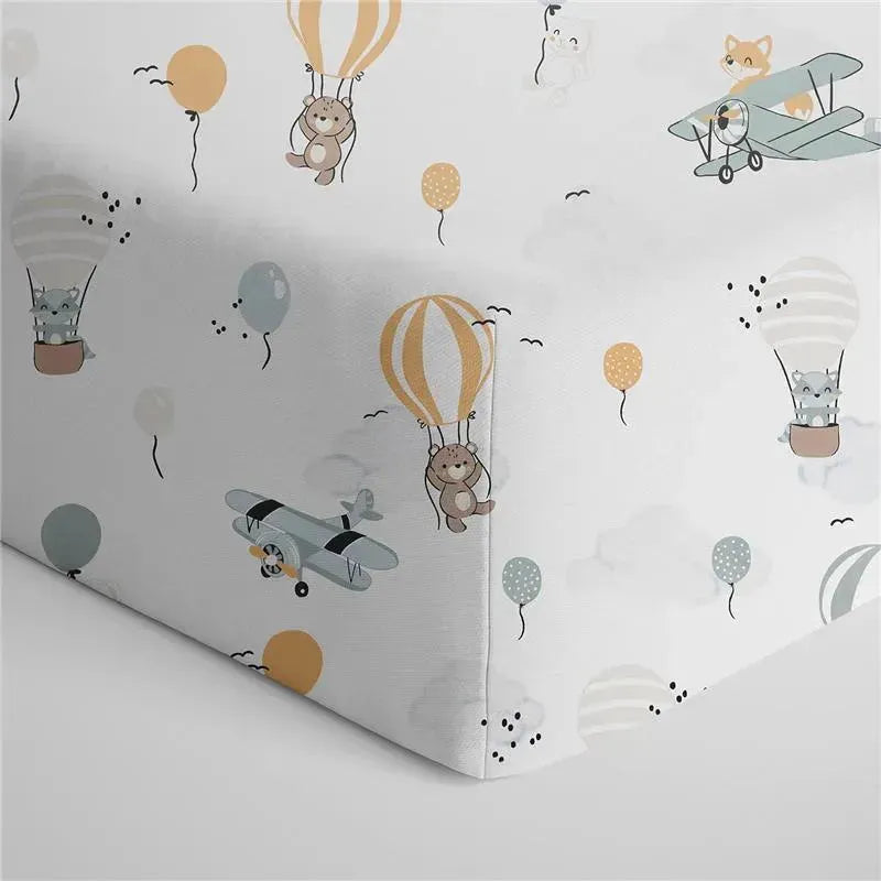 Living Textiles - 100% Cotton Jersey Crib Fitted Sheet, Up and Up Away