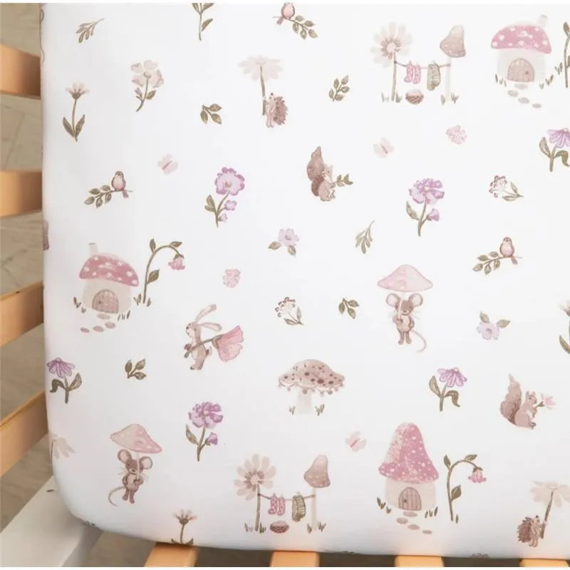 Visualize our fairyland setting; miniature mushroom villas snuggled between dainty, blooming flowers. Mischevious mice play a game of hide and seek, peeking out from behind lush leaves, while inquisitive squirrels frolic in the cushiony, green grass. Each one of our carefully designed pieces paints this magical picture, forming a comforting sanctuary for your little wanderer.