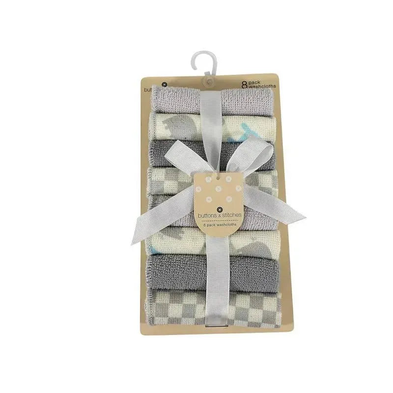Affordable, high quality Value pack of 8 Washcloths in coordinating elephant Check print - Keep these washcloths on hand to take care of spills and messes your little one makes during the day. If these towels are soft enough for your baby, it'll be great for adults too. Keep these handy in the bathroom to use as a facial towel
