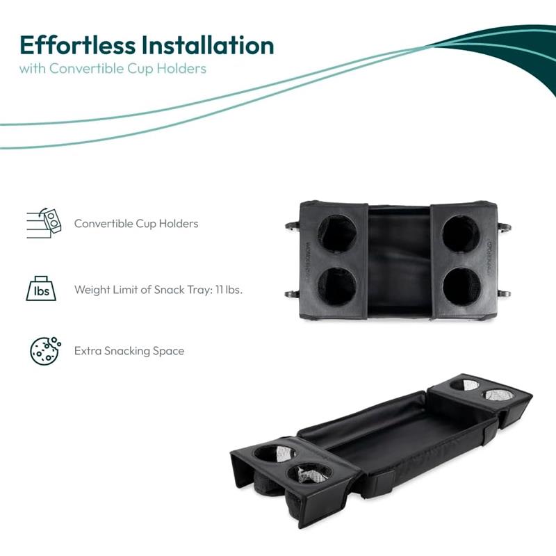 Picture this: Your little one suddenly decides they need more space for their array of snacks. With our ingeniously designed convertible cup holders, you can easily flip them out to create more room for their snack spread. It's not just a snack tray, it's a veritable feast at their fingertips!
